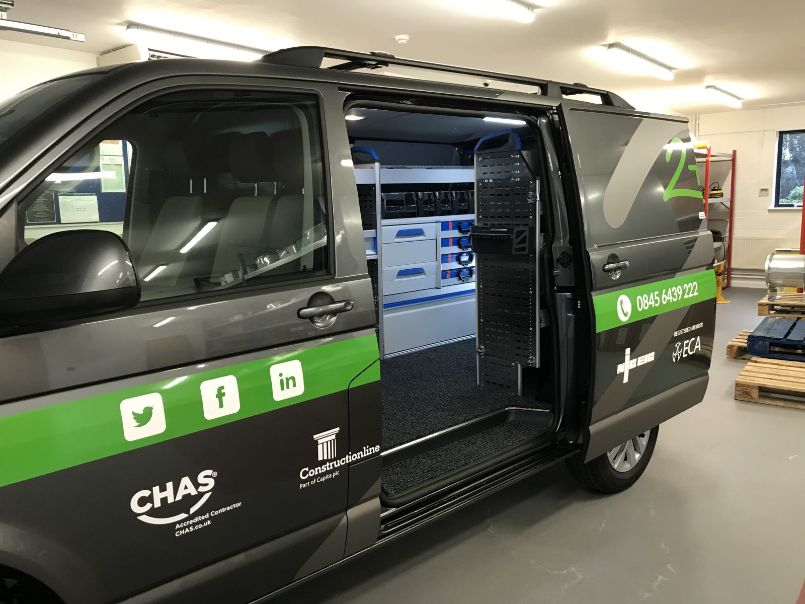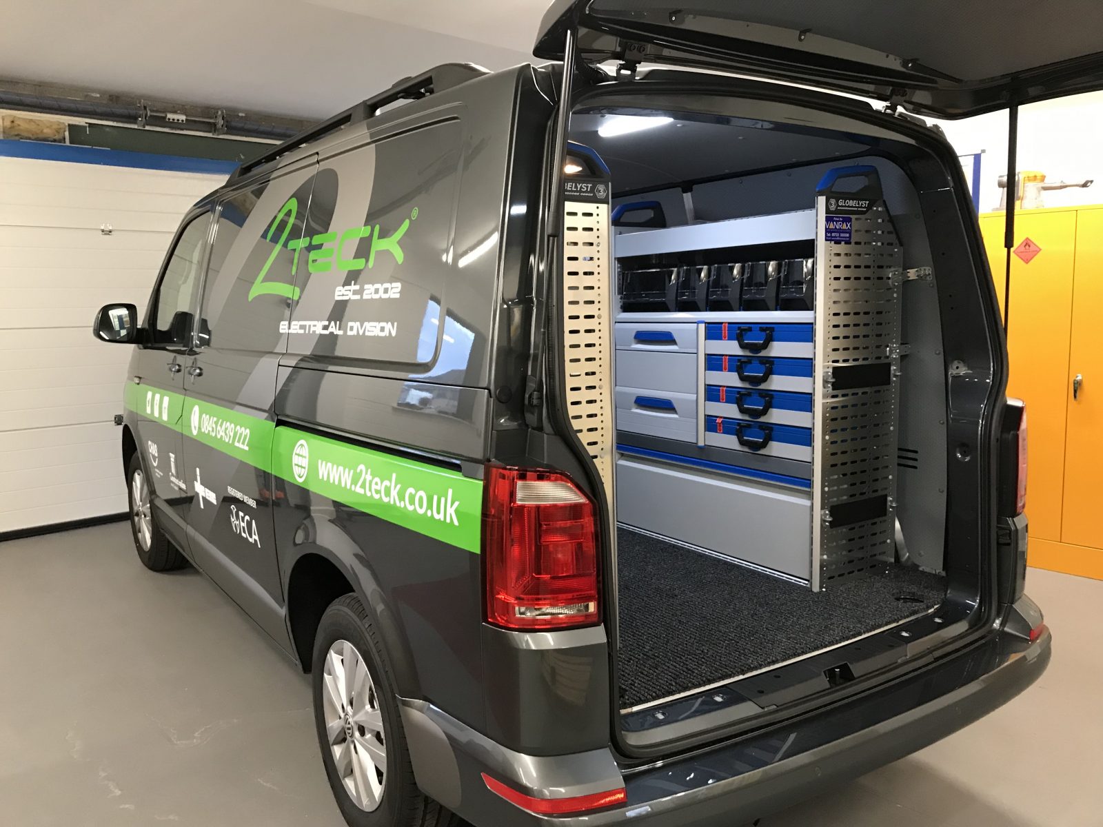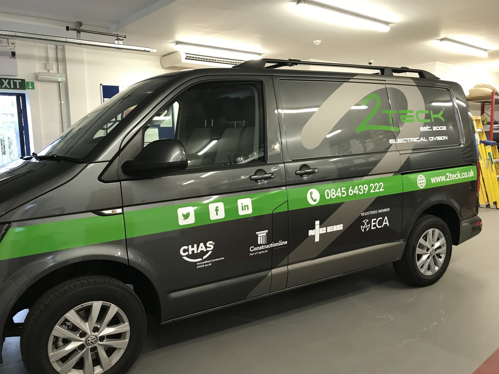 We pride ourselves in maintaining the highest of standards, from the work we carry out to the vehicles we use. The distinctive 2Teck fleet is made up of VW Transporters which are fully equipped with everything the engineers need to carry out their day to day duties and they are cleaned and inspected on a weekly basis. We would like to thank Dawsongroup for providing the vans, Fizzy Print for their fantastic graphics and also Neil Underwood for supplying and installing the high quality racking.